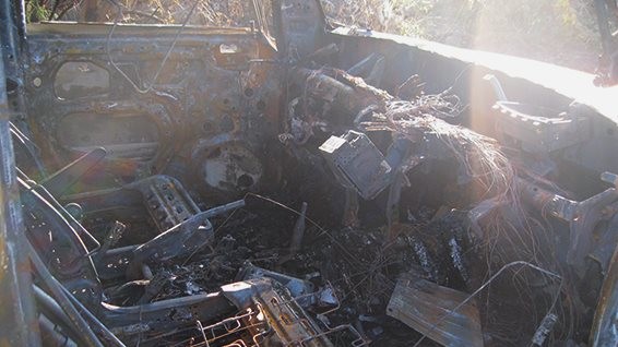 "3 жовтня в Вовчанський відділ поліції надійшло повідомлення від жінки, близько 00:25 вона почула звук, схожий на постріл. В ході перевірки інформації було встановлено, що в місті Вовчанськ на узбіччі в напрямку руху з села Вовчанські Хутори до центру міста було виявлено пошкоджений термічним впливом вогню автомобіль Toyota FJ Cruiser", - йдеться в повідомленні поліції.