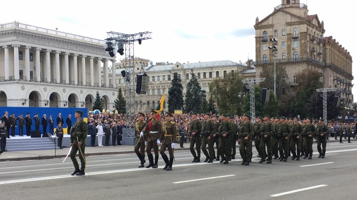24 серпня о 10:00 у Києві на Хрещатику розпочався військовий парад, в якому взяли участь українські військові та їхні колеги з країн-союзниць. Вперше на параді з нагоди Дня Незалежності України в Києві крокують військові країн-членів НАТО Латвії, Великобританії, Естонії, Чорногорії, а також Грузії. У параді взяли участь воїни АТО і, в тому числі, 200 українських бійців, нагороджених державними нагородами за мужність, проявлену під час збройного конфлікту на Донбасі, повідомляє Golos.ua.