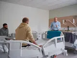 Водночас на трьох верхніх поверхи розташований палатний стаціонар на 104 ліжко-місця. Вони розміщені у 33 одномісних, двомісних і чотиримісних палатах. У палатах розташовані функціональні ліжка з електроприводами, зручні меблі та інклюзивні санітарні вузли з душем. Також передбачено три цілодобових пости медсестер, які надають постійний медичний супровід.