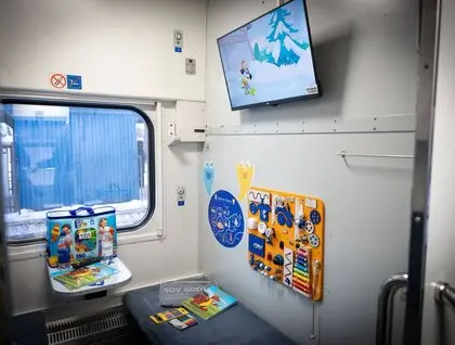 Також є все необхідне для дітей — мультики, ігри, розмальовки, книжки та настільні ігри. Також є дружні до тварин купе зі смаколиками.
