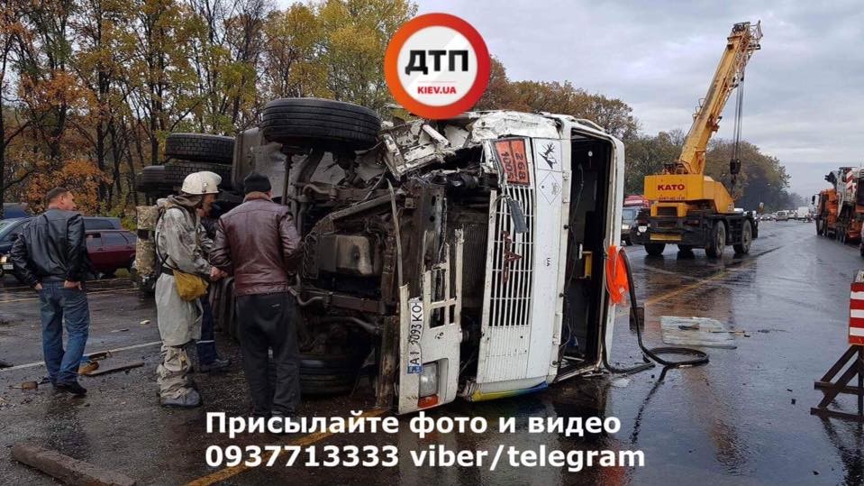Під Києвом на Одеській трасі сталася ДТП, в результаті якого перекинулася автоцистерна з аміаком.