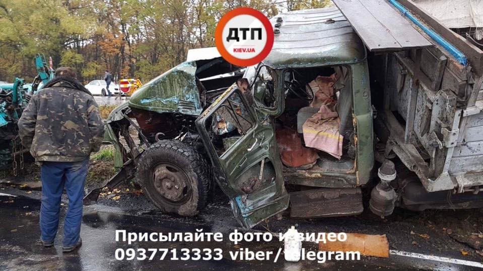 Як повідомляє на своїй сторінці у Facebook dtp.kiev.ua в результаті аварії постраждав водій другої вантажівки, йому надана медична допомога.