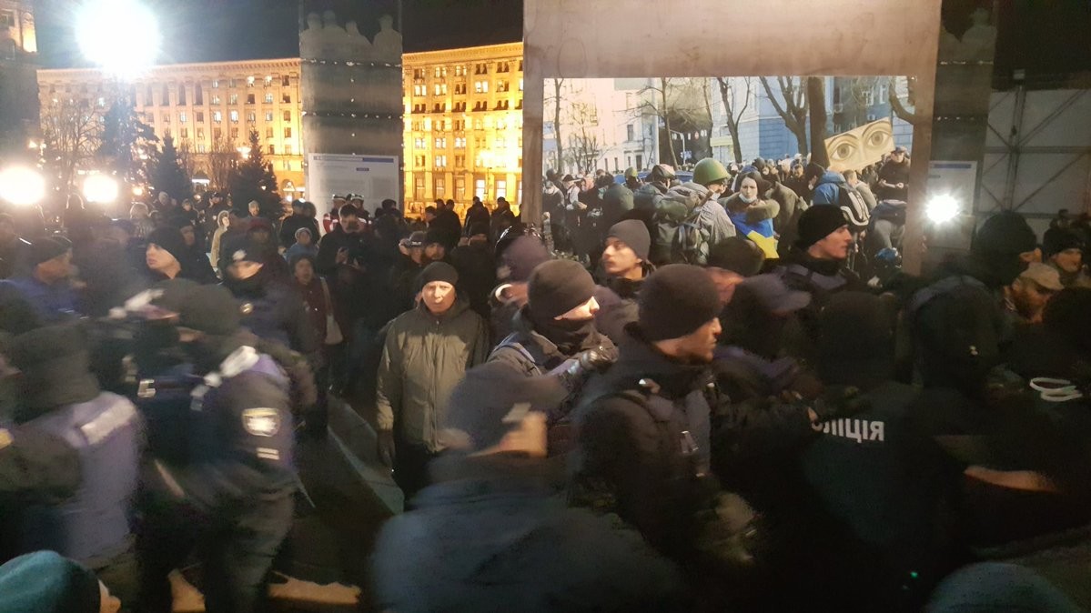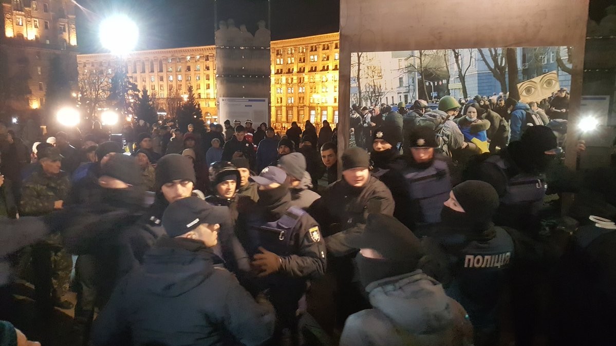 Між учасниками акції до річниці Євромайдану та поліцією сталася штовханина pic.twitter.com/MTbEQ6DvMQ