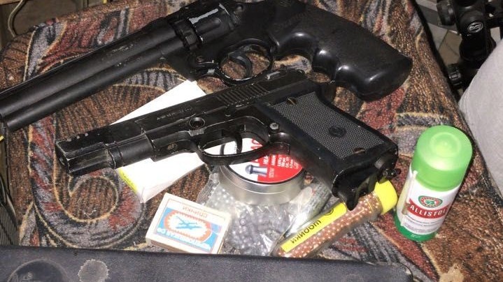 Крім того, була вилучена незареєстрована зброя, набої різного калібру, вибухові пристрої і карти. Зокрема, карта Миколаївської області з відмітками залізничних мостів і топографічні карти Миколаївської і Херсонської областей. А також велика кількість російської символіки й агітаційних матеріалів.