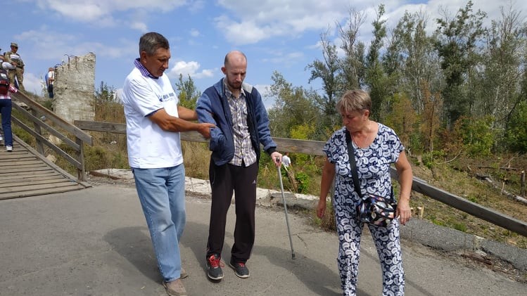 Слід зазначити, що на ділянці між зруйнованим мостом і контрольним пунктом пропуску нещодавно запрацювали комфортабельний автобус і електромобіль, що перевозять людей похилого віку. Крім того, тут працюють волонтери Червоного Хреста, але вони обмежені в пересуванні по мосту, тому цю найбільш проблемну ділянку шляху особи зі зниженою руховою активністю змушені були додати самостійно. Тепер і ця проблема буде вирішена.