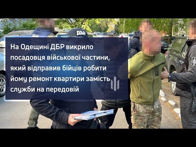 В Одеській області Державне бюро розслідувань викрило командира однієї з військових частин, який замість служби на передовій відправив чотирьох військових робити ремонт у власній квартирі. У ДБР зазначили, що вже повідомили йому про підозру.