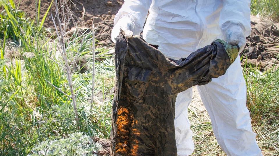 Керівник місії "Чорний тюльпан" Ярослава Жилкіна в ефірі телеканалу "112. Україна" уточнила, що про 36 мішків їм повідомили місцеві жителі. Але на місці вдалося розкопати і зібрати лише шість мішків. За її словами, речі бійців закопали фермери, так як трупний запах приваблював тварин.