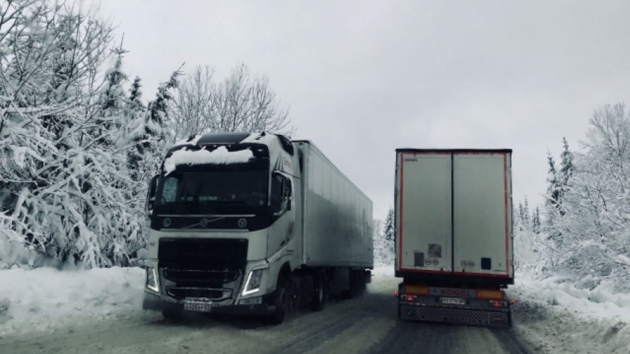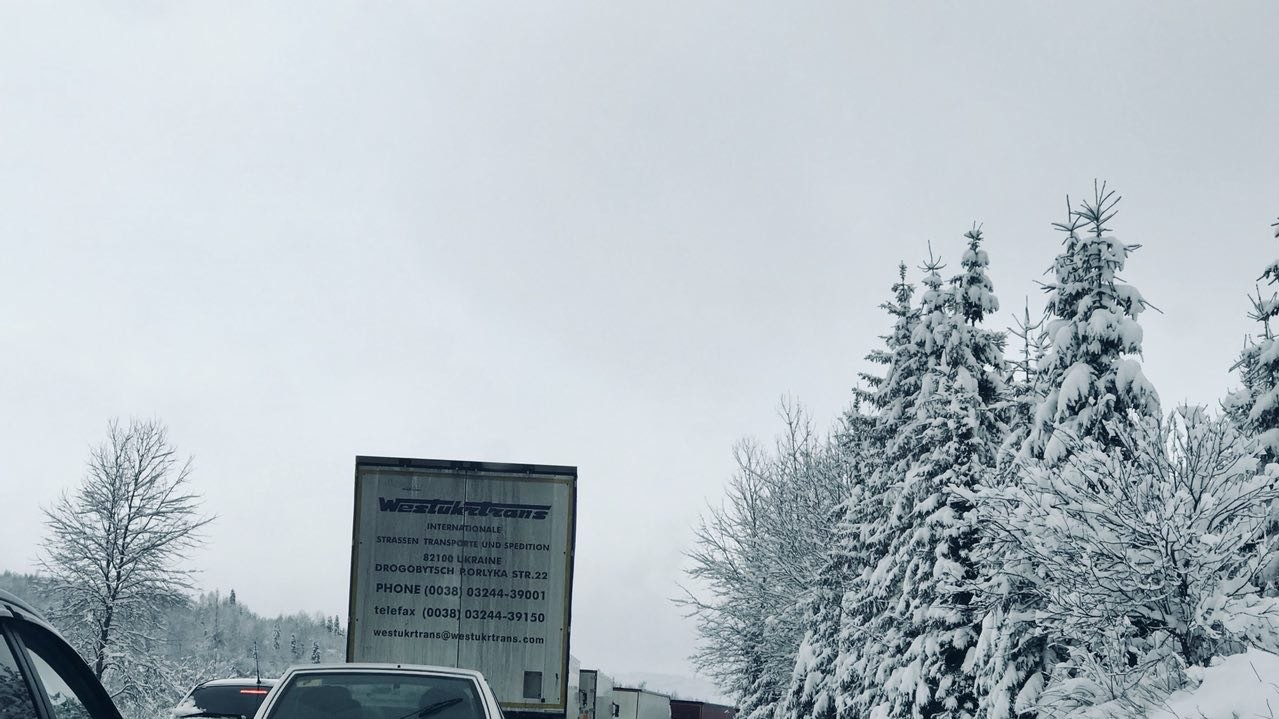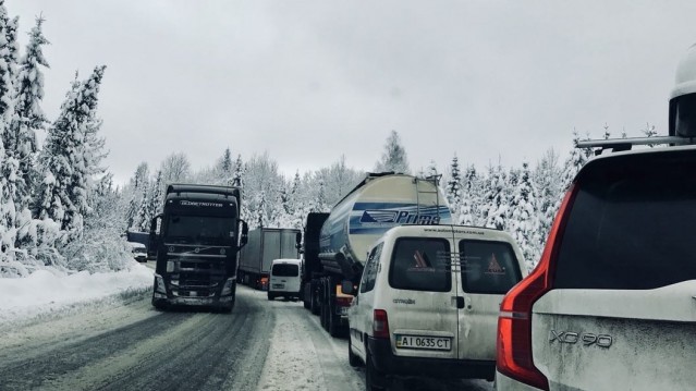 На ділянці траси Київ - Чоп у Карпатах на адміністративній межі Закарпатської та Львівської областей у неділю скупчилися вантажівки та чимало легкових авто, повідомляє Мukachevo.net.
