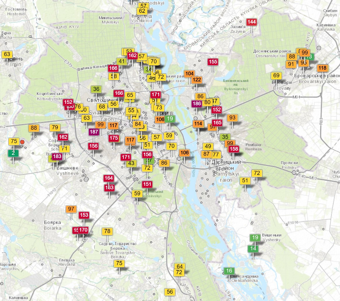 Управління екології та природних ресурсів Київської міської державної адміністрації повідомило у свою чергу, що станом на 8:00 2 вересня рівень забрудненості атмосферного повітря у Києві дуже високий на правому березі та середній на лівому. Також на правому березі міста спостерігається задимленість. Радіаційний фон у всьому місті – у нормі.