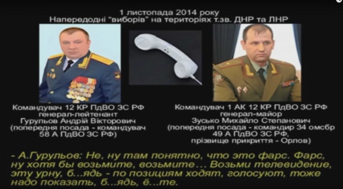 Під час розмови Гурульов запитує Зусько, як будуть голосувати військові, які сидять в окопах. Зусько відповідає, що з позицій російських військ будуть ходити з урною для голосування і будуть пересувні пункти.