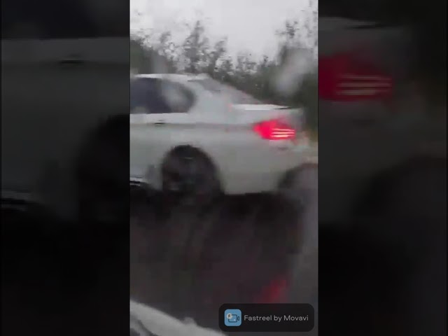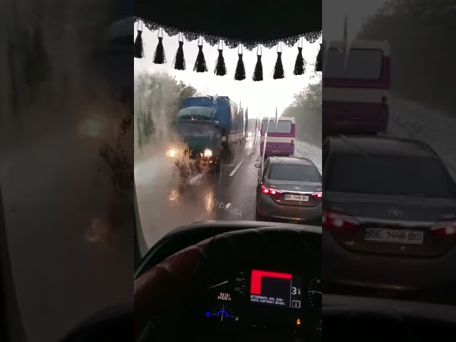 Після дощу, який падав на цій ділянці дороги, випав град та сніг. Проте останній швидко розтанув.