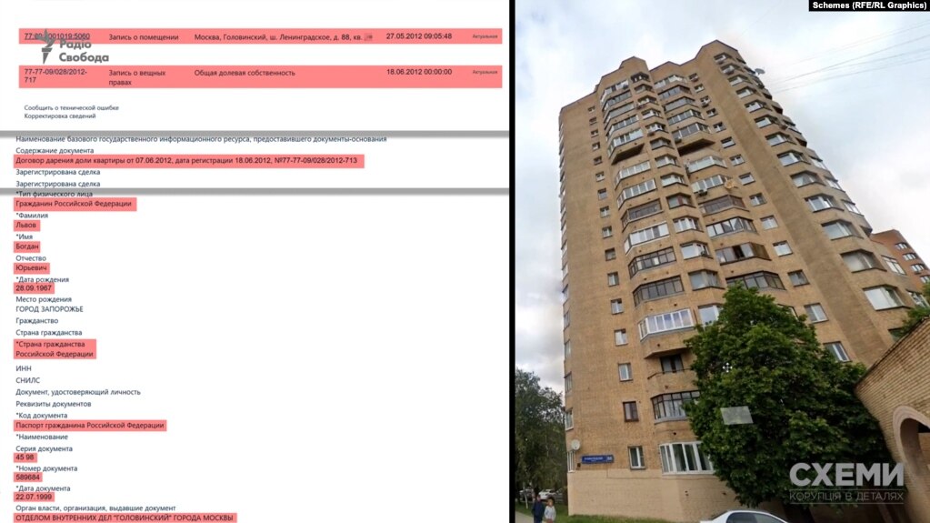 Ба більше, Львов також мав частку у цій квартирі, проте за договором дарування передав її у 2012 році дружині Інні. Цей правочин було здійснено за російським паспортом на ім'я судді, тоді Львов навіть прибув потягом до Москви, про що свідчать дані перетину кордону.