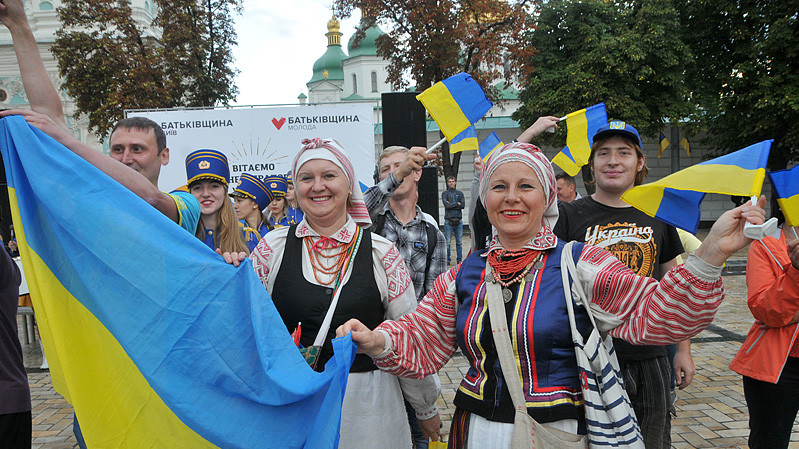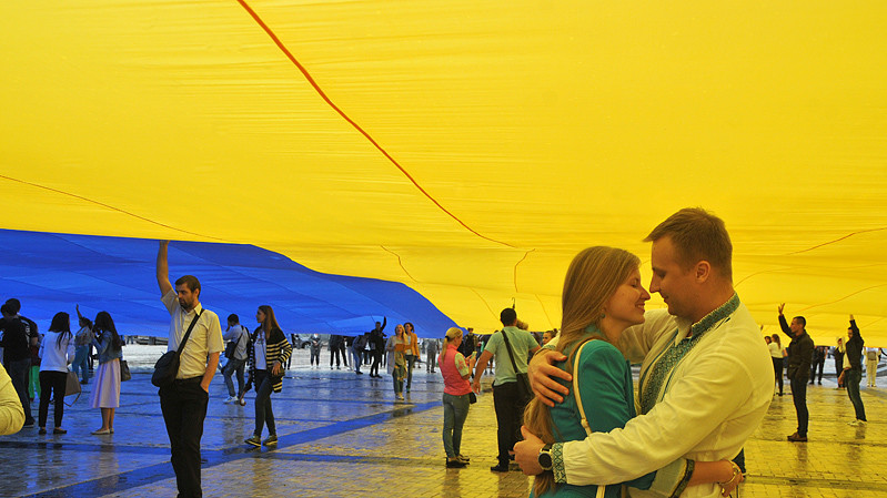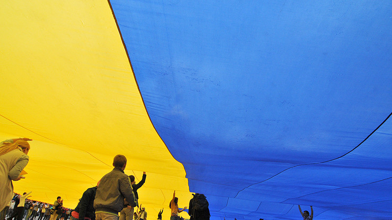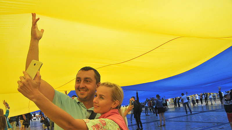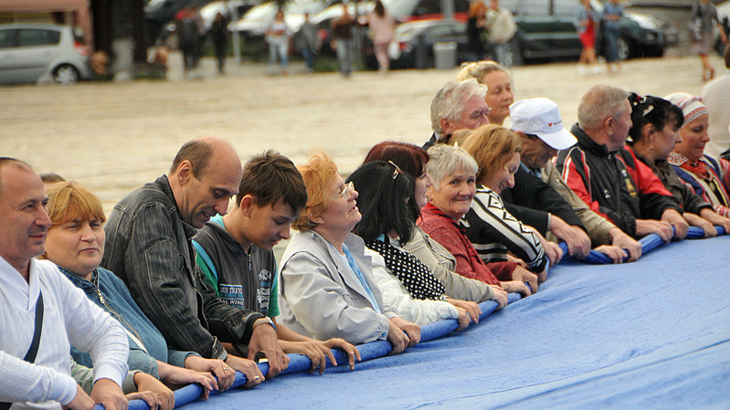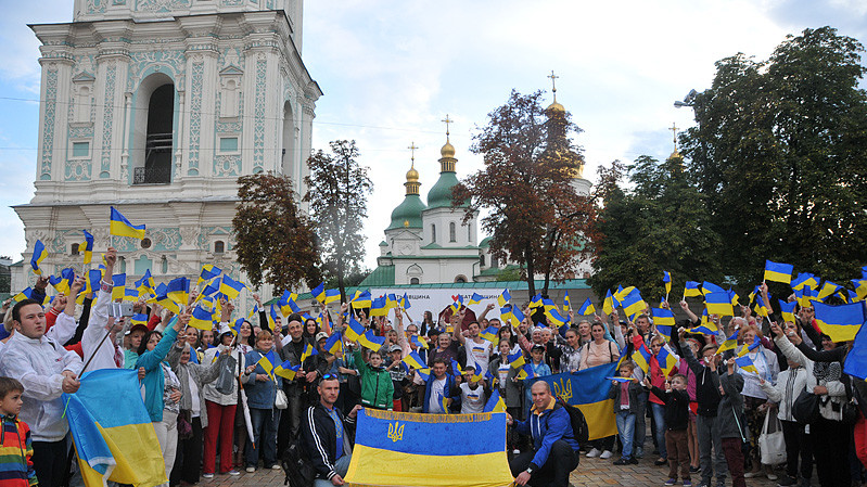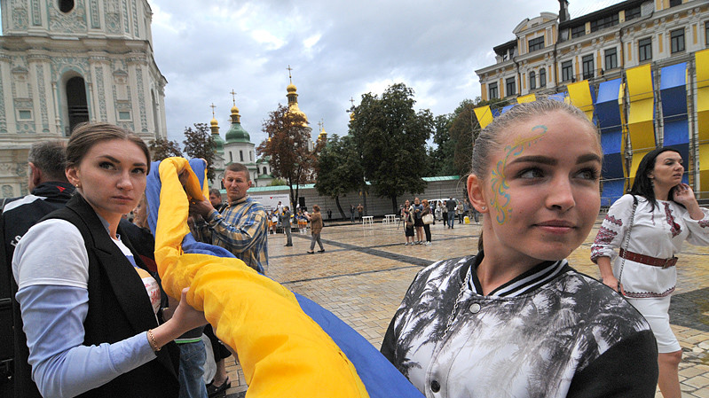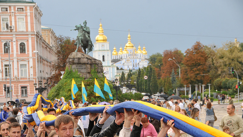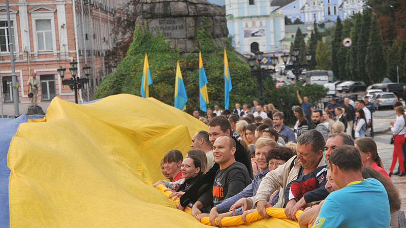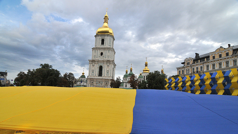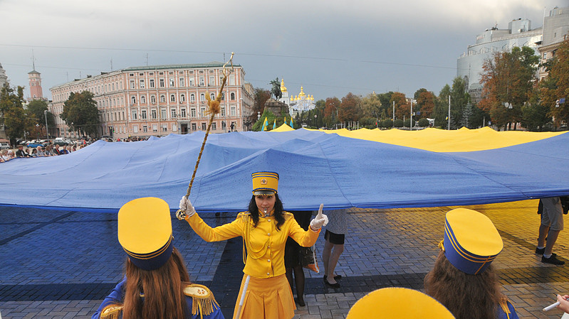 У Києві на Софіївській площі розгорнули найбільший у світі прапор України. Подія присвячена Дню державного прапора. Прапор площею 2400 м2 раніше розгортали в 50 містах України і в Кракові (Польща).