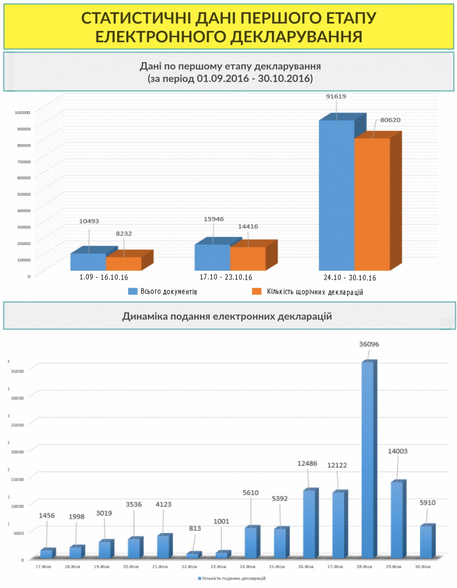 30 жовтня в Україні завершився перший етап подання е-декларацій за 2015 рік для суб'єктів декларування, що займають відповідальне та особливо відповідальне становище.