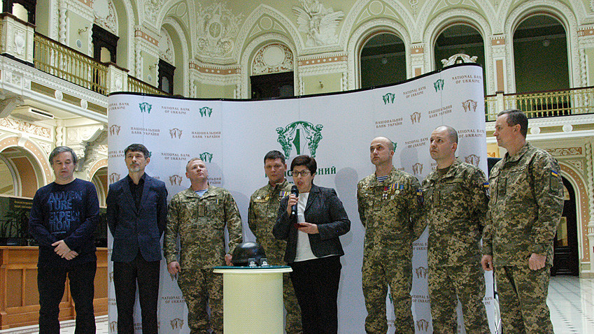 Національний банк України презентував пам'ятну монету "Захисникам Донецького аеропорту". Монета присвячена мужності і героїзму захисників Донецького аеропорту - "кіборгам", які обороняли його протягом 242 днів. Монету виготовлено зі сплаву на основі цинку з покривом нікелем, категорія карбування - "анциркулейтед", маса - 12,4 г, діаметр- 30 мм, тираж 1 мільйон штук. Над створенням ескізів монет працювали художники Володимир Таран, Олександр Харук та Сергій Харук. Роботу з утілення творчого задуму художників у монету виконали скульптори Анатолій Дем'яненко та Володимир Дем'яненко. Загалом упродовж 2018 року буде здійснено три спеціальні випуски пам'ятних монет серії "Збройні сили України": "Захисникам Донецького аеропорту", "День українського добровольця", "100-річчя створення Українського військово - морського флоту".