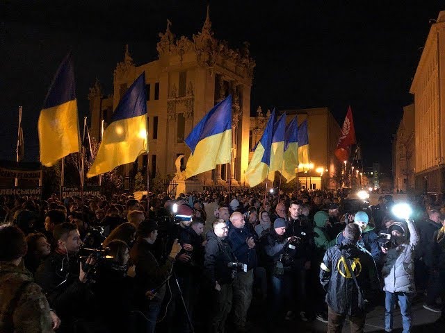 Увечері у вівторок, 29 жовтня, під Офісом президента на вулиці Банковій у Києві протестували проти відведення українських військ від Золотого Луганської області. Акція "Ні кроку назад!" почалася близько 19:00, її анонсував "Рух опору капітуляції".