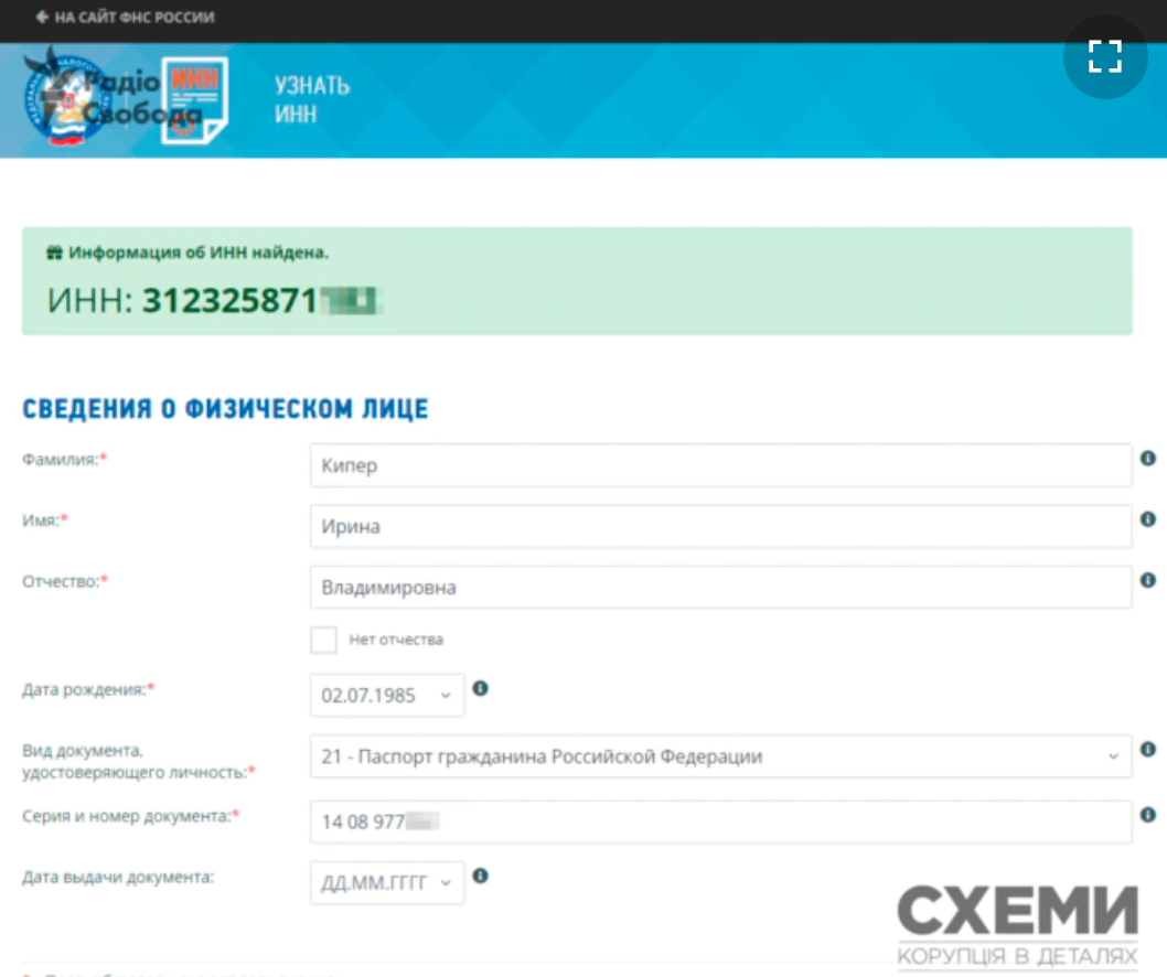 "На момент цієї публікації офіційні органи РФ обліковують російський паспорт дружини головного прокурора Києва Ірини Кіпер як дійсний", - зазначають розслідувачі "Схем".