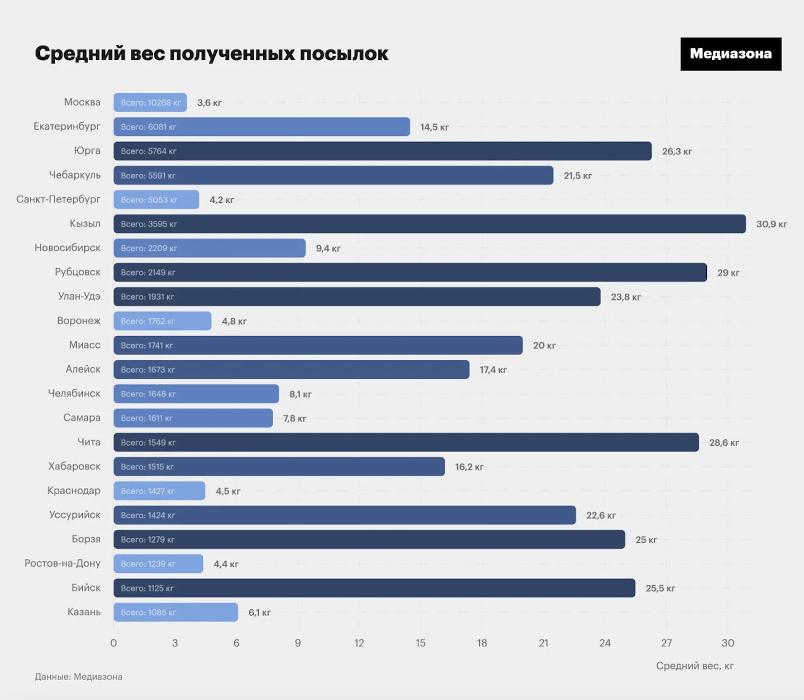 Зазначається, що найважче замовлення важило 381 кг і було відправлене з Рильська в передмістя Єкатеринбурга. Поштовий оператор не уточнює дані відправника. При цьому вагу посилки видно в коді сторінки.