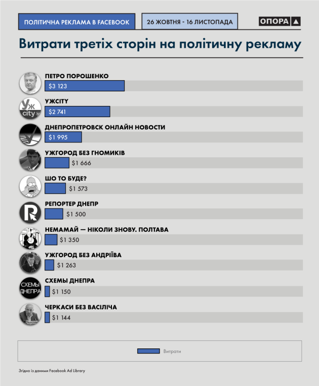 "Агітація, яка була здійснена кандидатами в соцмережах, зокрема, в мережі Facebook, за нашими оцінками, коштувала їм 227 тисяч доларів. Це підрахунок безпосередньо за 8,5 тисячі повідомлень і постів, які рекламувалися в мережі на платній основі", - сказала Айвазовська.