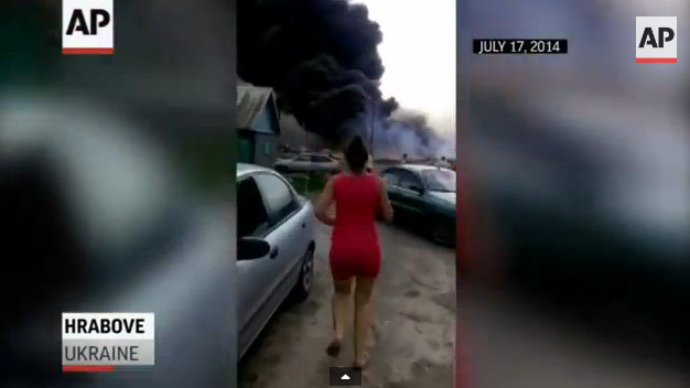 В інтернеті оприлюднене раніше невідоме відео, зняте з місця аварії малайзійського Боїнга-777 під Донецьком. Відео зняте очевидцем, буквально в перші хвилини після падіння літака в селі Храбове. Відео опубліковано агентством Associated Press.