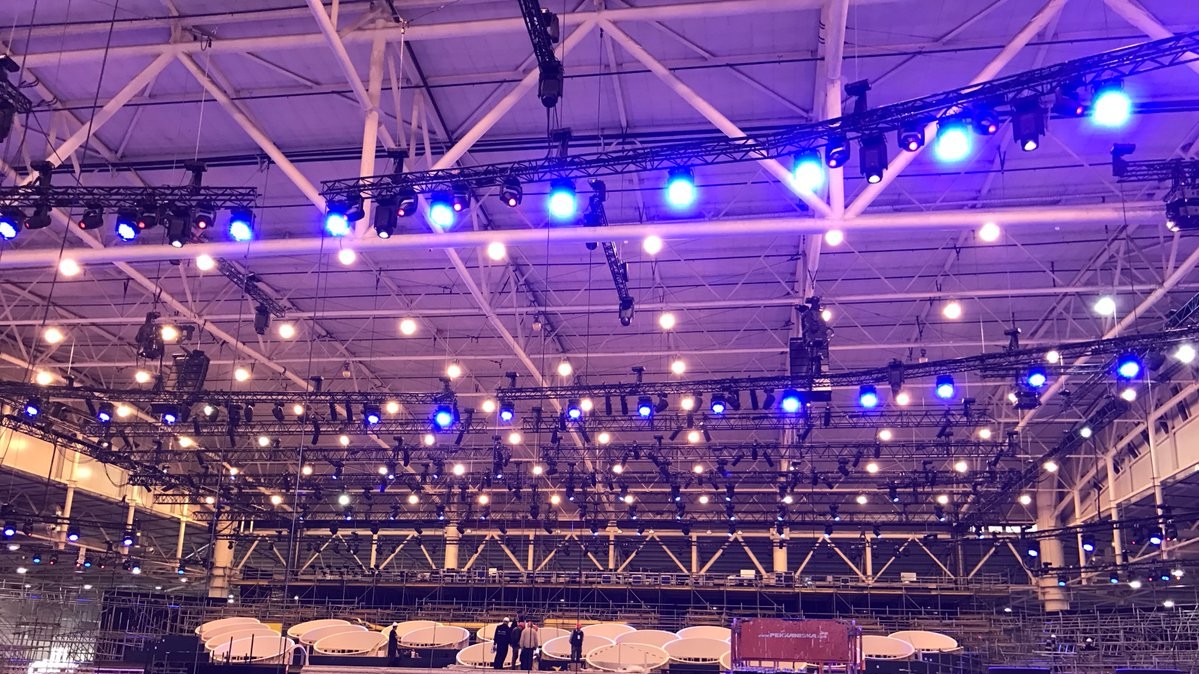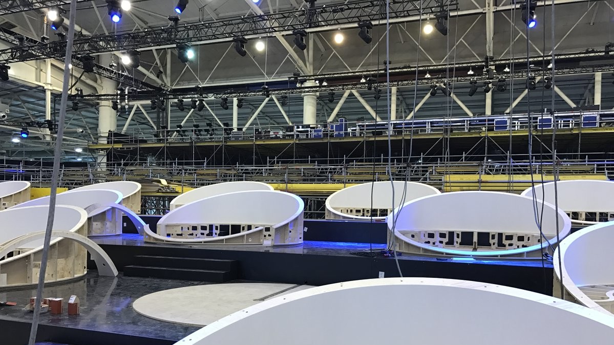 У мережі з'явилися фотографії монтажу головної сцени Євробачення – 2017 у Києві. Підготовчі роботи йдуть повним ходом: монтуються головна сцена, глядацькі трибуни, грін-рум, екрани, звук і світло.