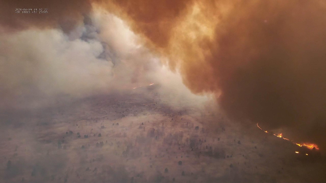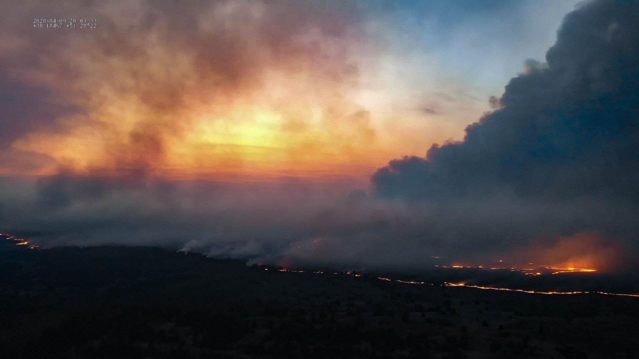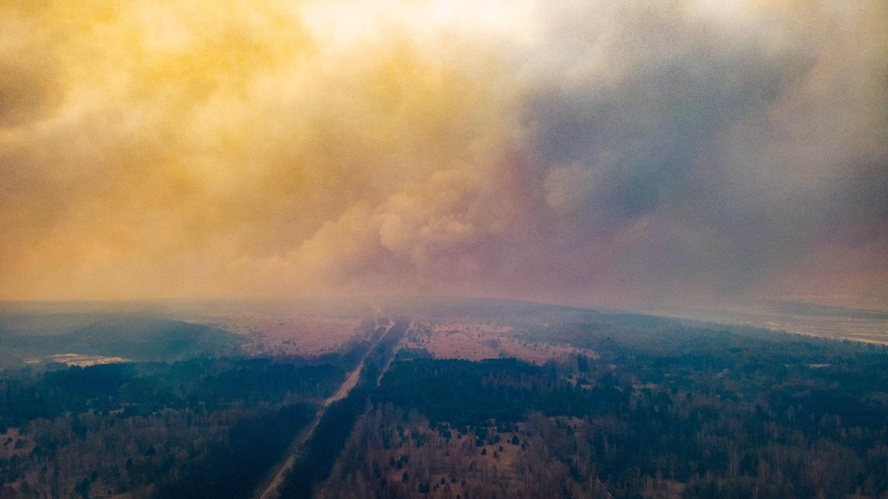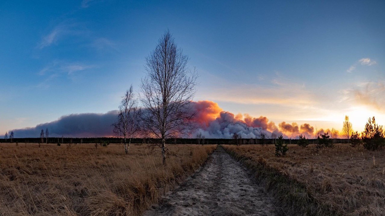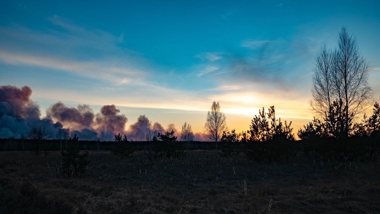 Опубліковані фото пожежі у Чорнобильській зоні, які з допомогою дрона 9 квітня зробив голова Громадської ради при Державному агентстві з управління зоною відчуження Олександр Сирота.