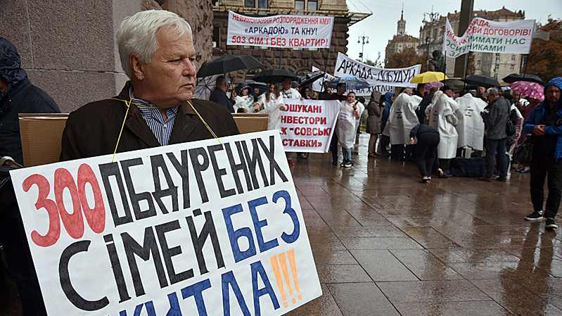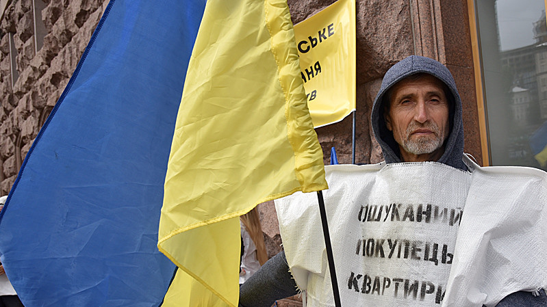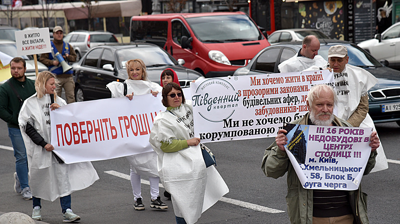 В Києві відбулася Піша всеукраїнська хода, організована Всеукраїнським об"єднанням інвесторів з вимогою до Кабінету Міністрів та президента України системно вирішити питання проблемних недобудов в Україні на державному рівні.