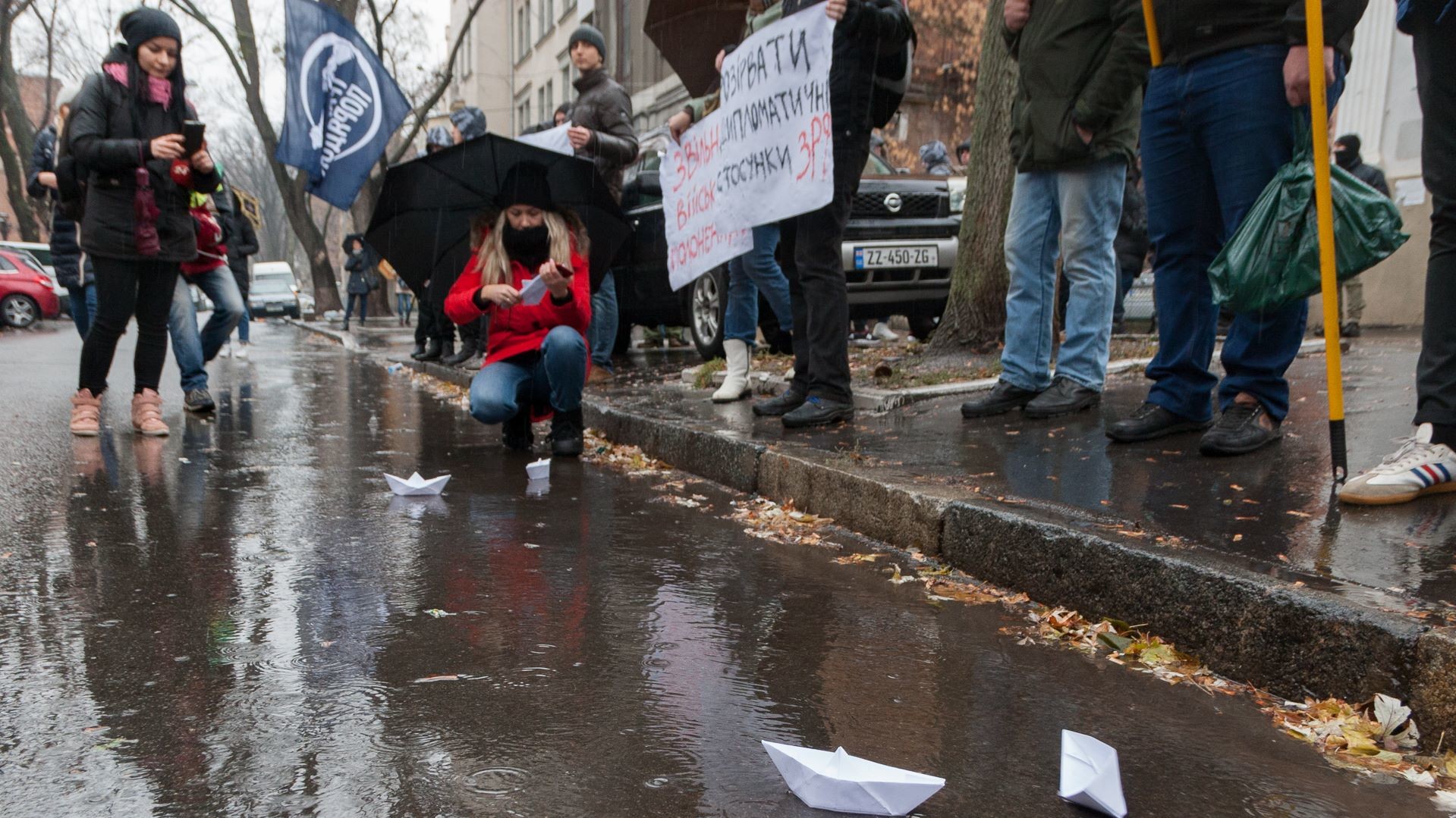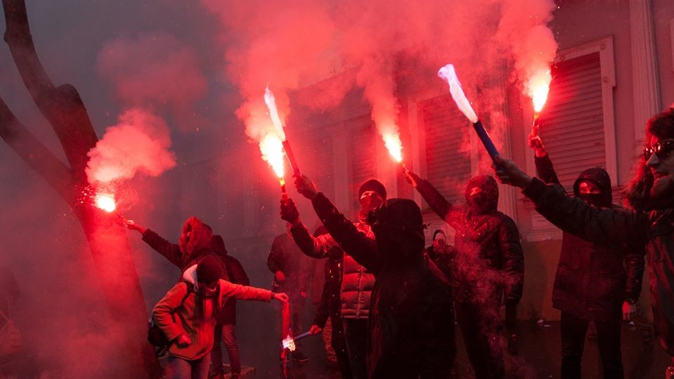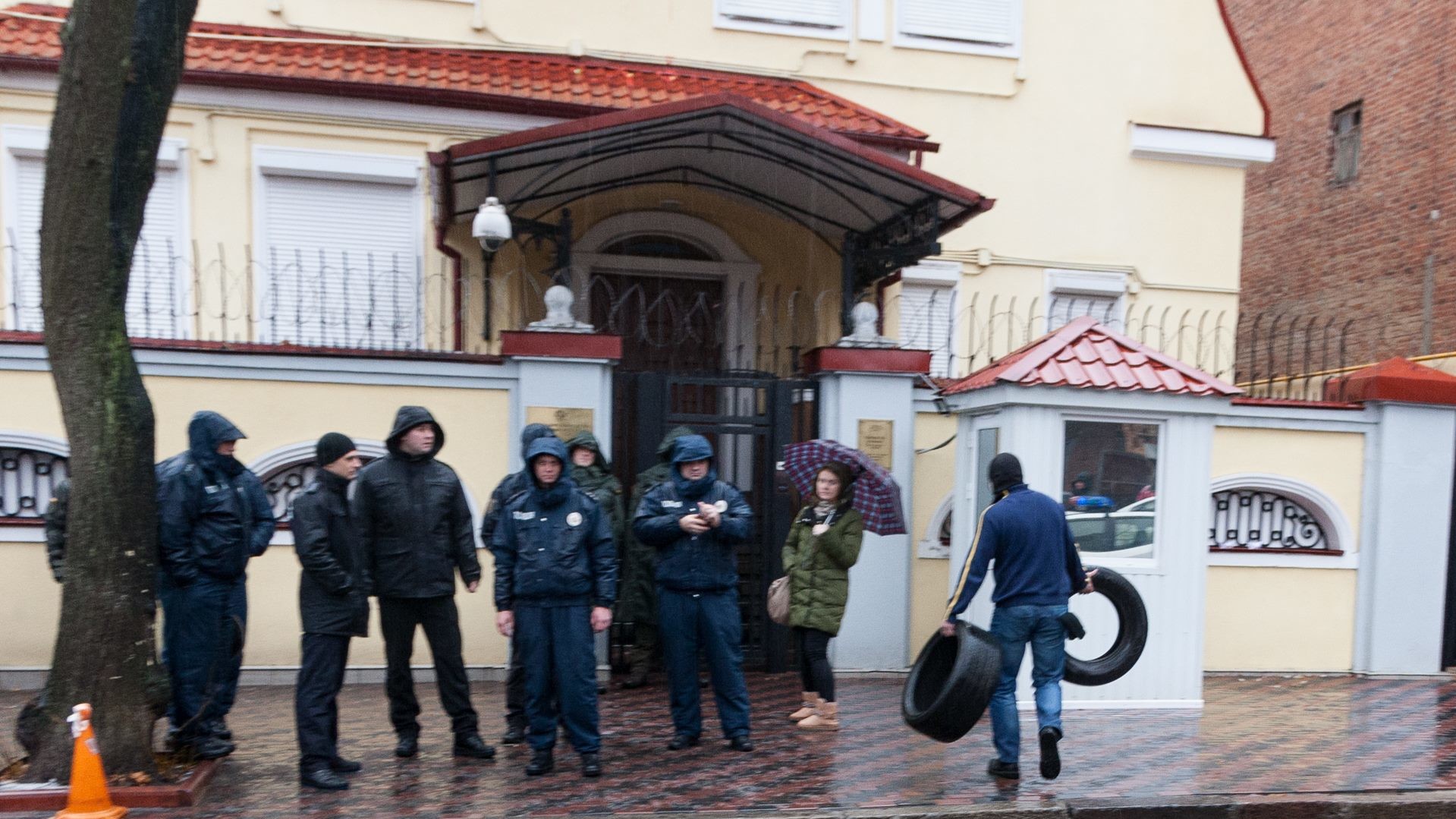 Нагадаємо, в ніч з 25 на 26 листопада активісти провели акцію протесту біля будівлі посольства РФ у Києві, на Повітрофлотському проспекті. Сотні людей розклали вздовж паркану посольства паперові кораблики, а згодом закидали пусту будівлю димовими шашками. Підпалити шини активістам заважали правоохоронці.