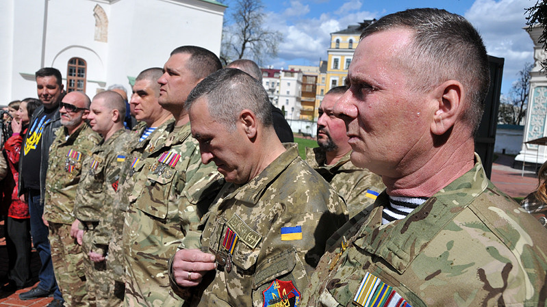 Освячення проходило на території Національного заповідника "Софія Київська", де зібралися священики, волонтери, військові та родичі загиблих у Донбасі бійців.