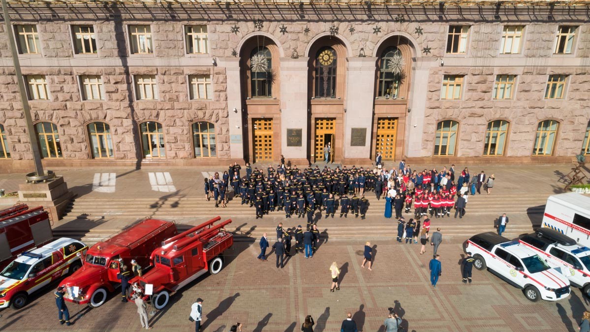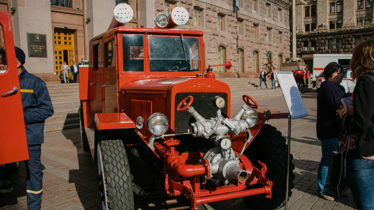 З самого ранку перед будівлею Київської міської державної адміністрацією розмістилася як сучасна, так і ретро техніка. Рятувальники фотографувалися та приймали поздоровлення. Пізніше вони попрямували в колонний зал міської адміністрації де їх привітав заступник голови КМДА Петро Пантелєєв, а також вручив почесні нагороди.