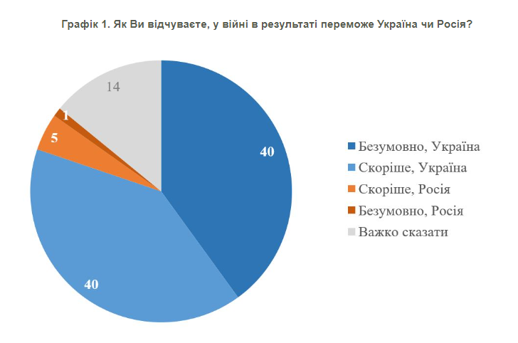 Думки про те, що в результаті війни Україна переможе Росію, притримується 80% українських біженців. З них безумовно впевнені в цьому твердженні 40%, ще стільки ж зазначили, що вони скоріше впевнені. Відчувають, що переможе Росія 6% опитаних українців, а 14% обрали варіант «важко сказати». Про це свідчить опитування Київського міжнародного інституту соціології, проведене серед громадян України, що проживають в країнах Євросоюзу після початку повномасштабної війни.