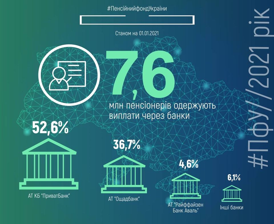 "Станом на 1 січня 2021 року 68,6% українських пенсіонерів отримують пенсійні виплати через банки", - йдеться в повідомленні.