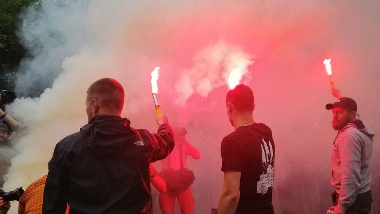 Як повідомляє Громадське, в Переяслав-Хмельницькому біля відділення поліції відбулися сутички активістів з поліцією. Силовики зі щитами оточили будівлю відділення, а націоналісти, серед яких зокрема праві С14, почали кидати в них каміння і димові шашки.