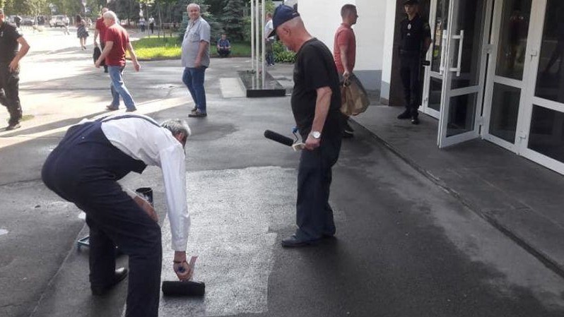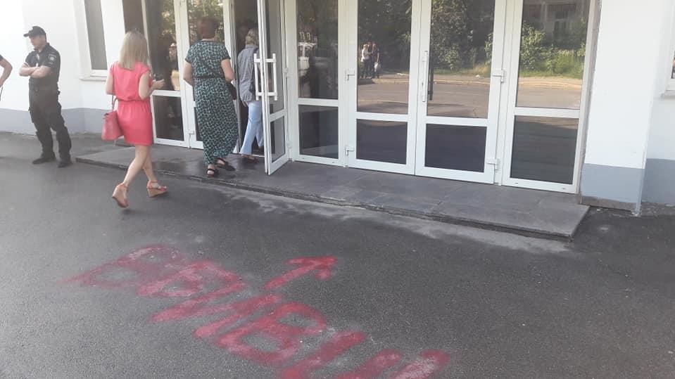 У Києві поряд із будівлею МВС встановили колонку і включили дитячу колискову. Також активісти спалили флаєри.