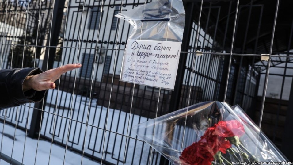 Під посольство РФ у Києві приносять квіти та іграшки у зв'язку з масштабною пожежею в Кемерово, під час якого загинули 64 людини, повідомляє телеканал "112 Україна".