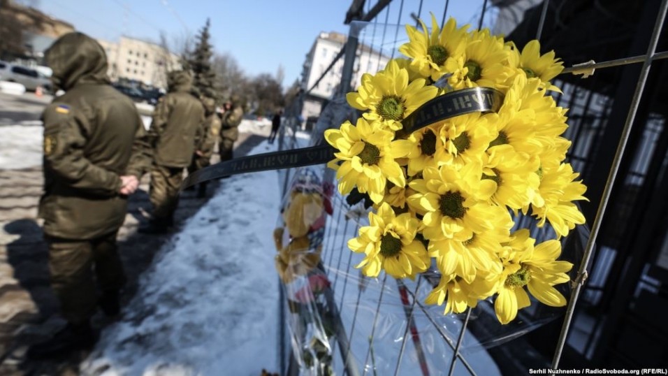 "До паркану дипломатичного відомства кияни та гості міста зносять квіти у зв'язку з масштабною пожежею у Кемерово", - зазначив журналіст телеканалу.