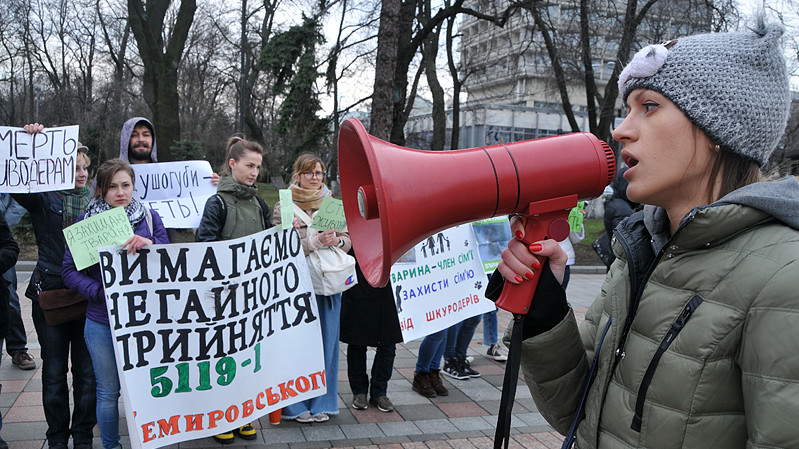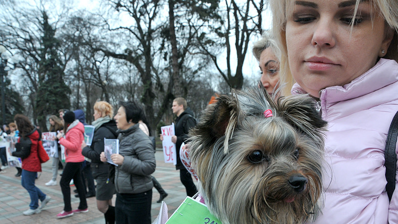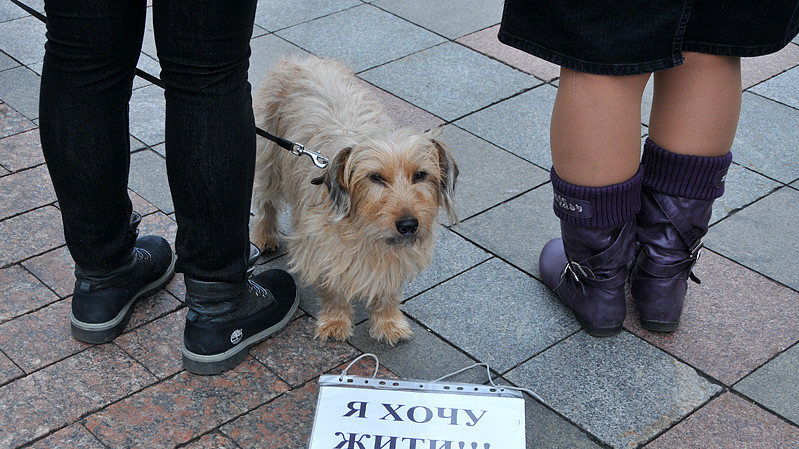 Під будівлею Верховної Ради в Києві відбулася акція зоозахисників під гаслом "Зупиніть вбивства і тортури тварин!" Тримаючи в руках плакати і своїх чоториногих друзів, активісти вимагали негайно ухвалити законопроект № 5119-1 про посилення кримінальної відповідальності за жорстоке поводження з тваринами, який встановлює покарання строком до восьми років позбавлення волі.