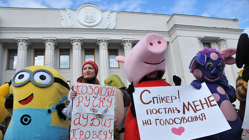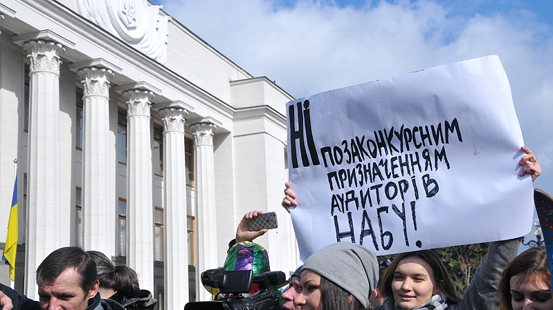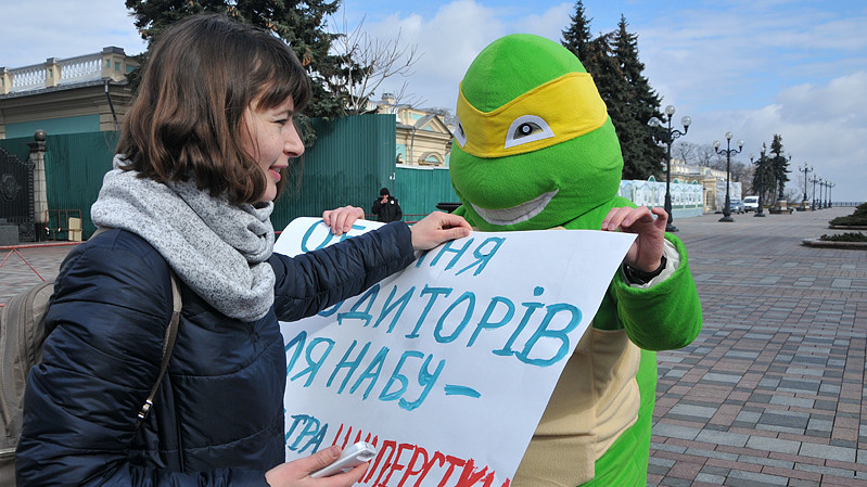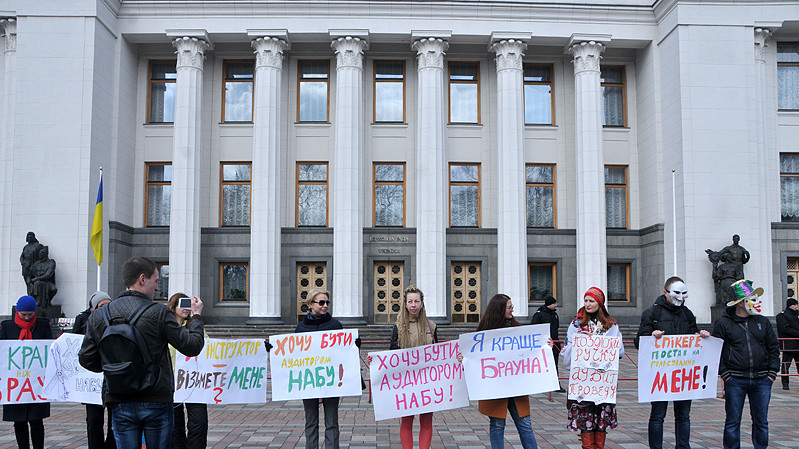 Біля будівлі Верховної Ради відбулася театралізована акція "Хочу бути аудитором НАБУ!" Активісти в масках клоунів і мультперсонажів пропонували себе на посаду аудитора НАБУ, а також протестували проти кандидатури Найджела Брауна, ставленика "БПП" і "Народного фронту". Верховна Рада поки не може призначити аудитора НАБУ від парламенту, оскільки за крісло аудитора ведеться боротьба між фракціями.