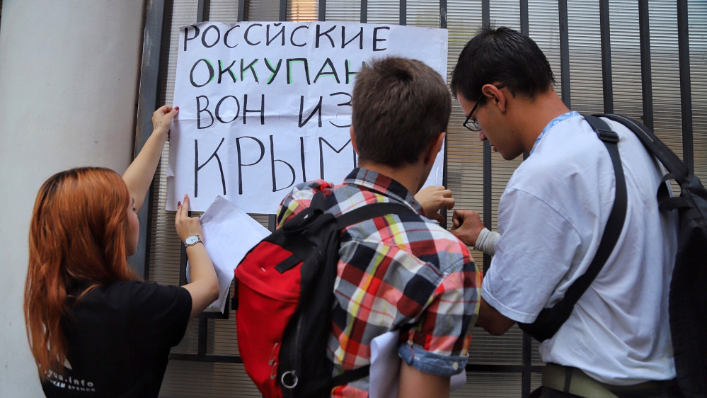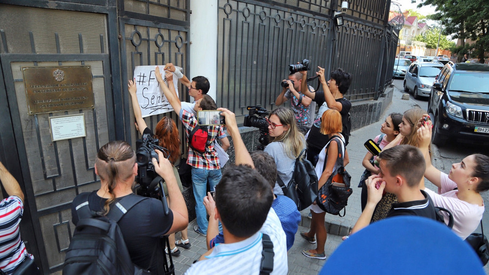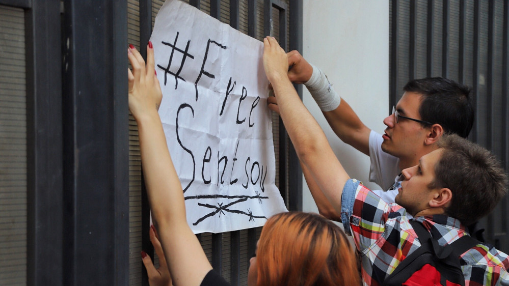 Учасники акції принесли саморобні плакати і банер з вимогами звільнення Станіслава Клиха, Олега Сенцова й інших політв'язнів, а також деокупації Криму.