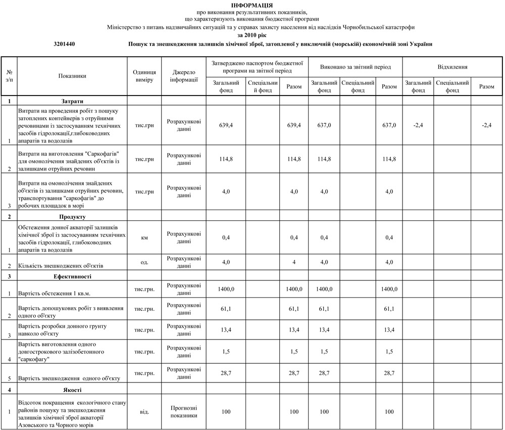 При цьому загальна кількість виявлених у процесі виконання держпрограми об'єктів хімзброї в Чорному і Азовському морях чиновники відмовляються оприлюднити. При цьому дані екологічних приватних підприємств з Севастополя "Пирамис" і "Ситал", залучених Мінприроди для пошуку ІВ і повідомили про виявлення відповідно 428 і 1 200 контейнерів, спростовуються. Аргумент - сумнівність технології їх пошуку з застосуванням супутникових знімків.