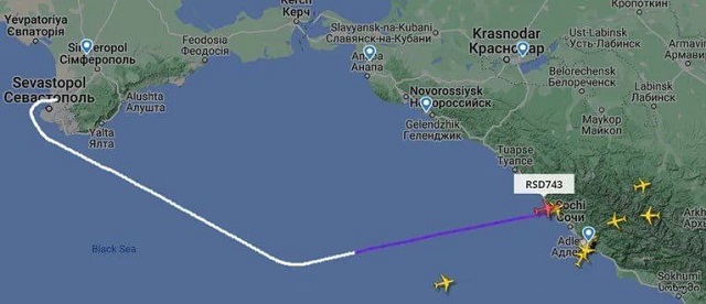 Напрямок, куди летів лайнер із бортовим номером RA-64059, спочатку не був відомий. Але потім сервіс показав, що літак летів у Сочі.