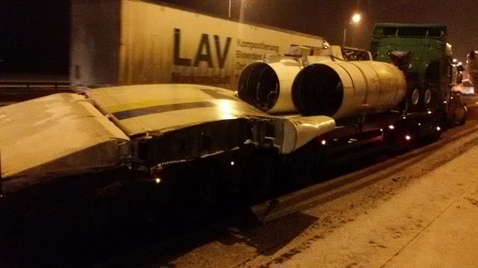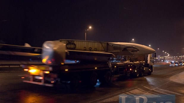 При цьому під час руху літака повністю рух транспорту не перекривали. Колона з частинами літака пересувалася тільки по одній перекритій смузі.