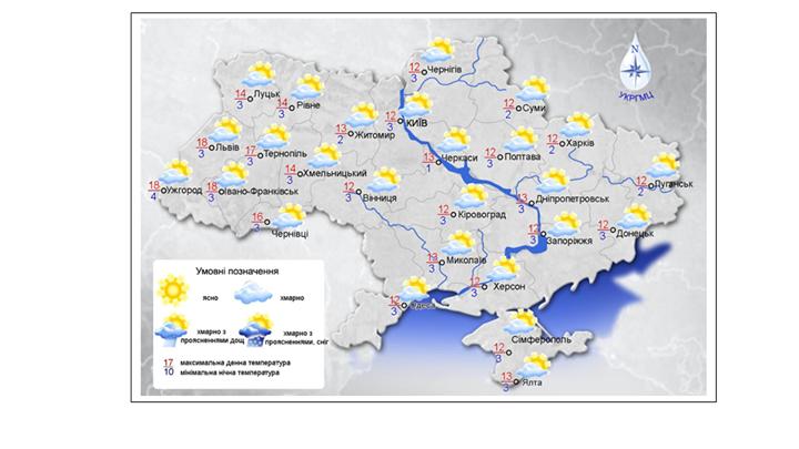 У Київській області температура вночі 0-5° тепла, вдень 9-14°. У Києві вночі 2-4° тепла, вдень 11-13°.