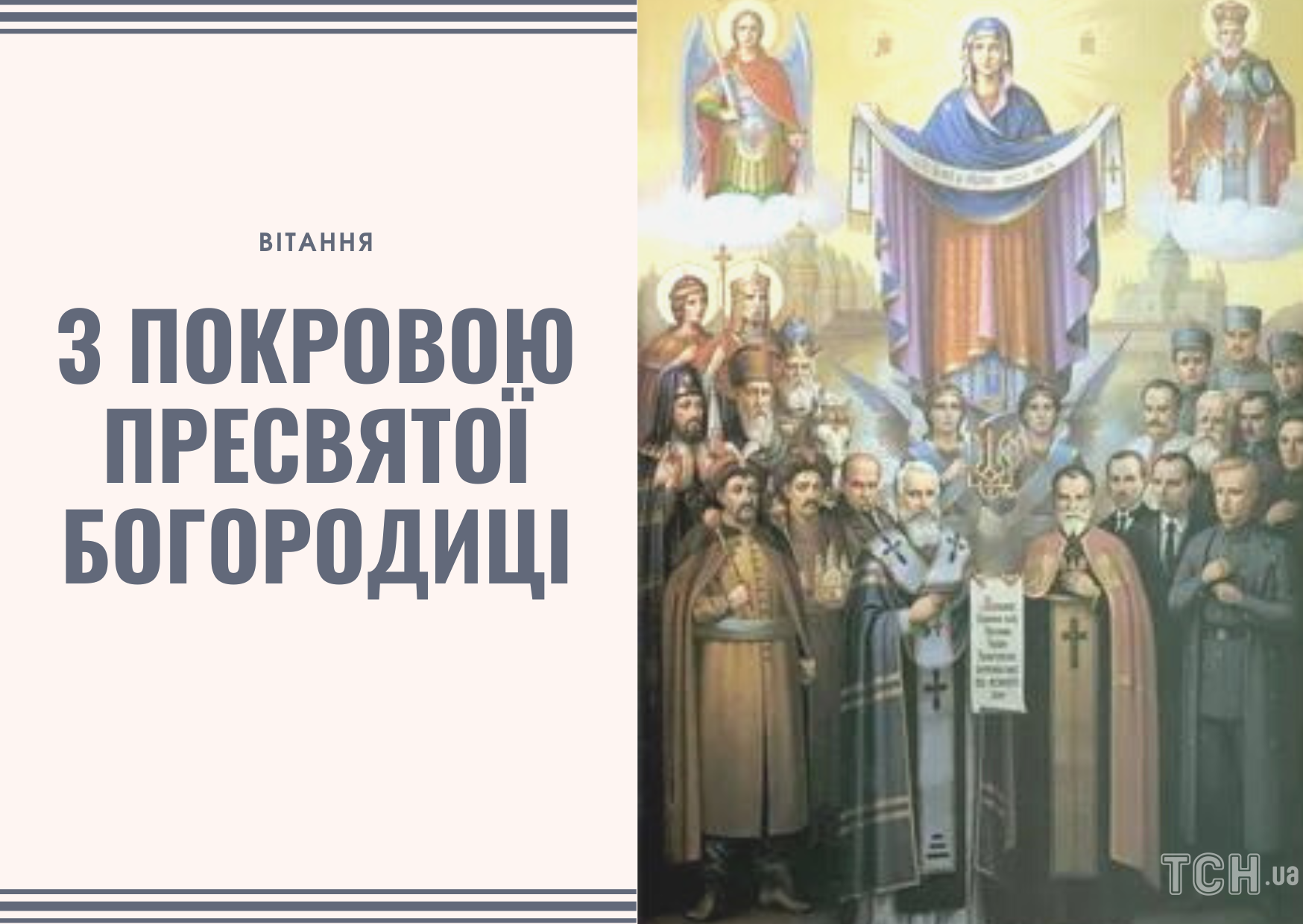 Вітаю з Покровою Пресвятої Пречистої Богородиці! Нехай Божа Мати вбереже від зла, спрямує на щастя, допоможе зберегти в душі віру, доброту, любов. Затишку, світла, достатку і благодаті твоєму дому!