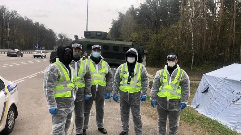 У поліції запевнили, що всі поліцейські, нацгвардійці та медики на блокпостах чергуватимуть у захисних масках і костюмах, дотримуючись вимог карантину.
