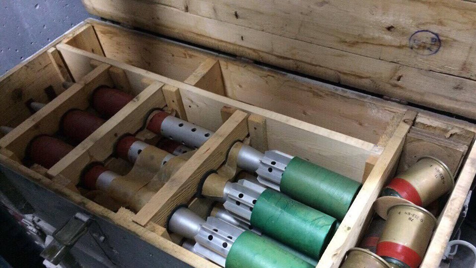 Як повідомив заступник голови Нациполиции – начальник Кримінальної поліції Вадим Троян на своїй сторінці у Facebook увечері в п'ятницю, 4 листопада, серед іншого правоохоронці вилучили 60 снарядів-ракет для установки "Град", 150 мінометних мін, 31 бронебійний снаряд, а також глибинну міну, авіабомбу, озброєння для БМП, станково-протитанковий гранатомет, ручний кулемет, а також БТР-60.