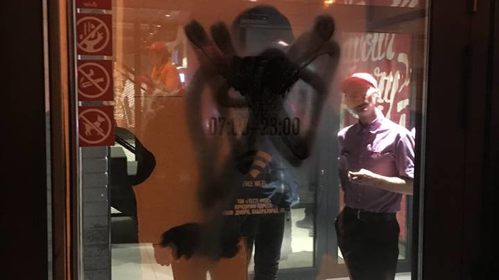 Увечері в середу, 21 листопада, під стінами закладу зібралися кілька десятків людей, включаючи волонтерів і народних депутатів. Протестувальниик нанесли на стіни і вікна написи "Гідність?", "Де ваша совість?" і "People died here (Тут загинули люди)". За викликом керівництва ресторану прибули співробітники поліції, які затримали протестувальників із застосуванням спецзасобів.
