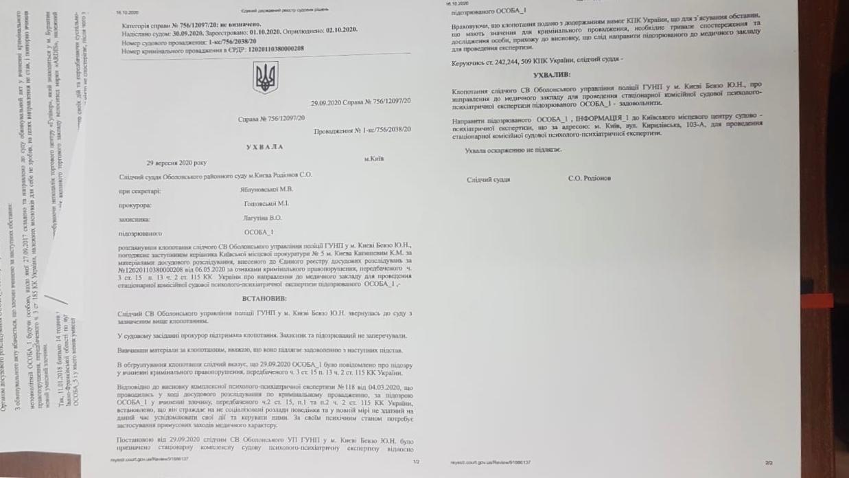 Наразі 15-річний Арсеній Невгодовський перебуває в Оболонському РОВД. В ухвалі суду документі йдеться про те, що неповнолітнього необхідно затримати та примусово направити на комплексну психолого-психіатричну стаціонарну експертизу терміном на 2 місяці. При цьому працівники поліції не просто затримали 15-річного хлопчика, а влаштували “маски-шоу” із затримання дитини.