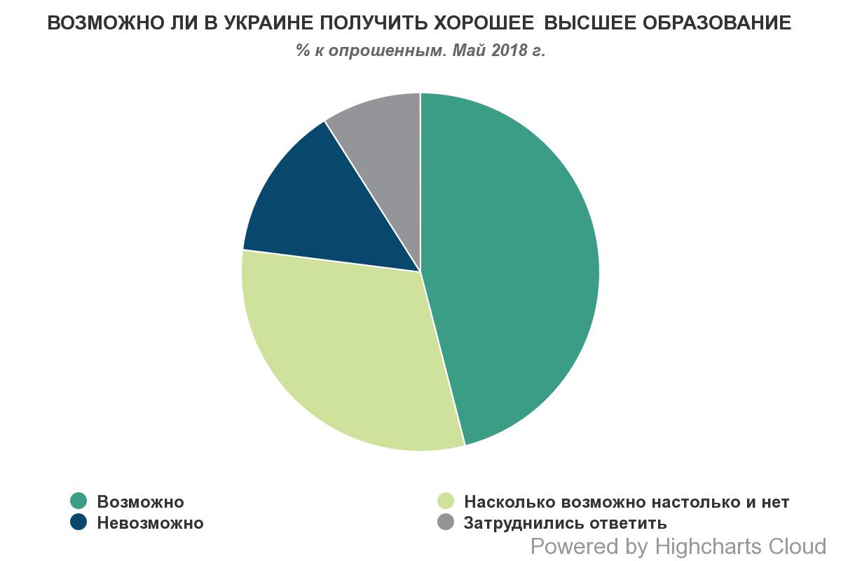 Відносна більшість українців (46%) вважають, що в нашій країні отримати гарну вищу освіту можливо, ще третина (31%) дотримуються думки, що наскільки можливо, настільки й ні, свідчать дані опитування компанії Research & Branding Group.