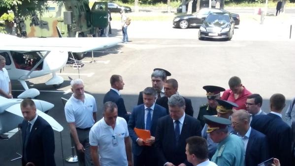 "Перші зразки дають серйозні підстави для оптимізму. В дуже короткий термін, фактично працюючи 24 години на добу, скоротили період розробки, скоротили період проведення випробувань, з допомогою держави робимо все для того, щоб поставити це вже на серійне виробництво. Йдеться про прилади нічного бачення, системах управління артилерійським вогнем, удосконалення захисту комунікацій у військах. Мова йде про дрони, які будуть захищені від впливу радіоелектронної боротьби противника", - сказав Порошенко.